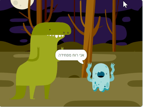 פרויקט סיפור קצר על דינוזאורשפוגש רוח מפחידה.מי בסוף מפחד ממי?גם נלמד מושגים בסיסיים בתכנות:קוד, פקודה, אירוע, uערך